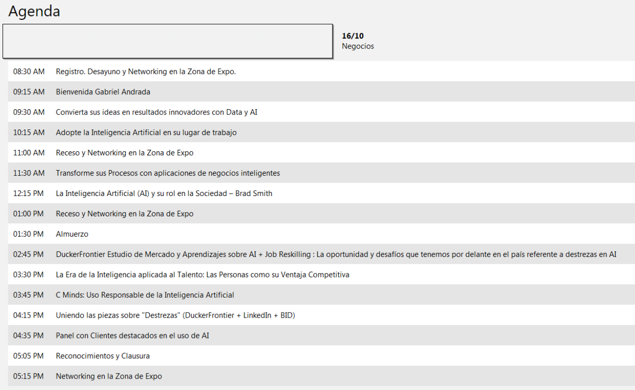 El segundo día, estará enfocado hacia líderes de negocios. Mostraremos nuevos ejemplos de cómo la IA es accesible para todos. Sobre la capacidad que tiene para transformar industrias y aumentar la productividad, ayudando a resolver retos sociales y cómo la confianza, es un factor clave para la Inteligencia Artificial.